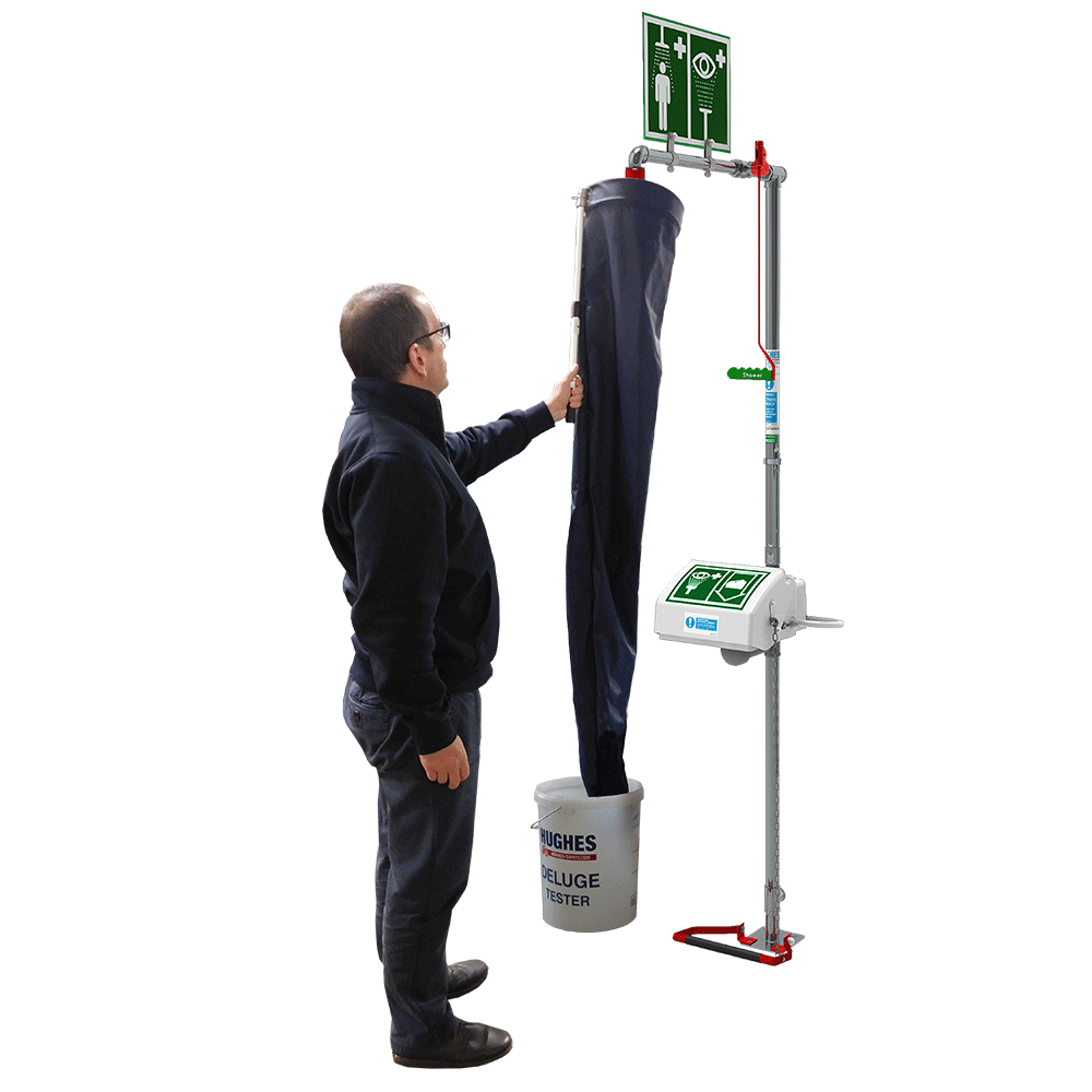 The deluge test kit also includes an eye wash gauge to test the spray pattern of an eye wash unit, as well as a squeegee to clean the equipment following inspection.