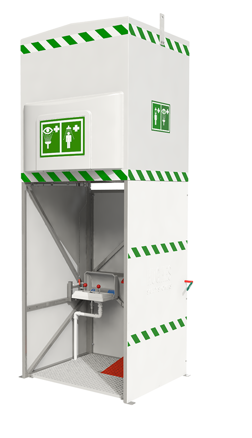 Where the trucks are being refuelled, workers should have access to an emergency safety shower within 10 seconds’ reach. The Hughes’ range of tank-fed showers are ideal in locations where a reliable water supply is unavailable. The 1500L tank shower is compliant to international standards, providing 15 minutes of relief to a casualty and can be fitted with an optional eye wash to provide an all-in-one solution. An optional drainage sump can be added to contain the contaminated water and safely dispose after use.