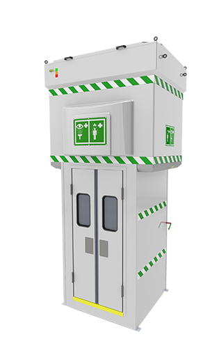 The Hughes 2000L polar tank-fed safety shower is engineered for freezing climates, with immersion heaters to prevent water from freezing in temperatures as low as -50°C. Insulated double-swing doors close behind the casualty, while optional room heaters maintain a comfortable temperature inside the cubicle. Observation windows allow for safe monitoring by colleagues. - Freeze-Protected Showers: